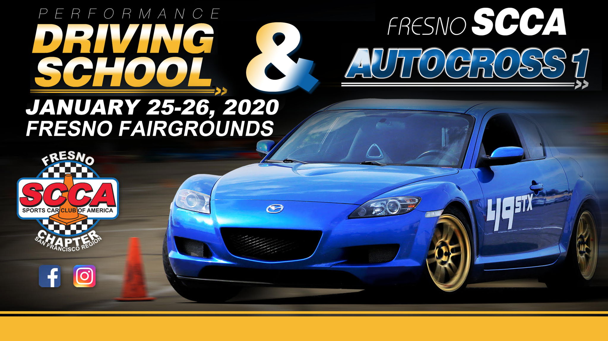NEW THIS YEAR: All two-day autocross events with the Fresno SCCA will be combined into a single registration link, including the Performance Driving School and Event 1. All Saturday students and Sunday competitors will register at this single link. Once you continue to the registration page, you will then be able to select which day's event you are registering for.